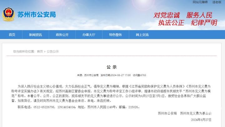 近日,相信大家都刷到了“胡友平见义勇为事迹”,针对她这样的行为,苏州市追授她为“见义勇为模范”称号。这份称号也会被人们所记住,同时也警惕当代年轻人,是时代的楷模。对于她的不幸离世,我们都是怀着悲痛的心理,其家人心里会比我们更难受。好在,当地有关部门追授了荣誉称号。