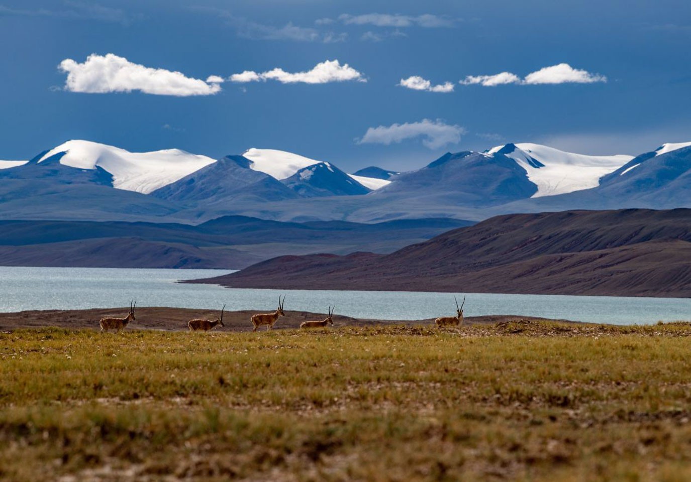 在双湖县境内拍摄的藏羚羊(2022年7月17日摄)。 (新华社记者 晋美多吉/图)