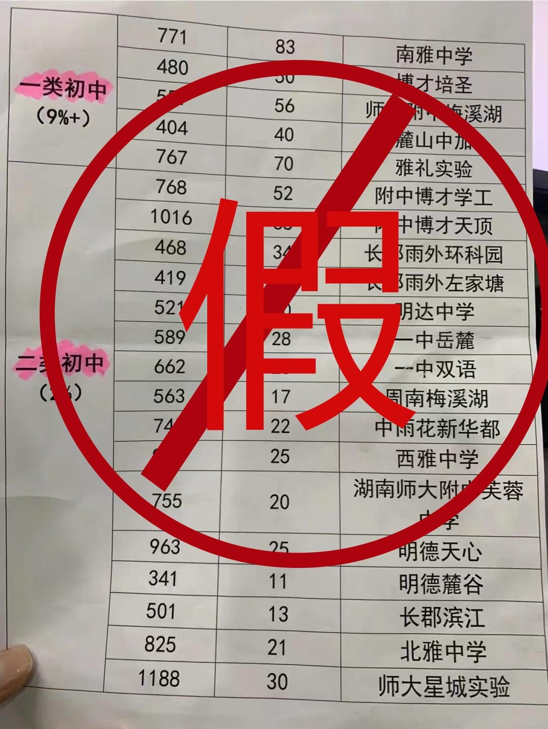 近日,长沙多个小区业主群中突然流传了一份纸质的“2023年长沙初中最新排名”。