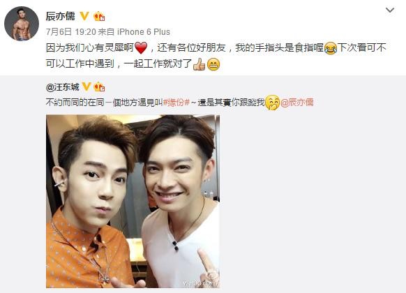 大东和辰老板还真是心有灵犀呢,微博上秀恩爱呀!!!