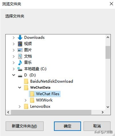 在D盘新建名为“WeChatData”的文件夹,选中该文件夹。