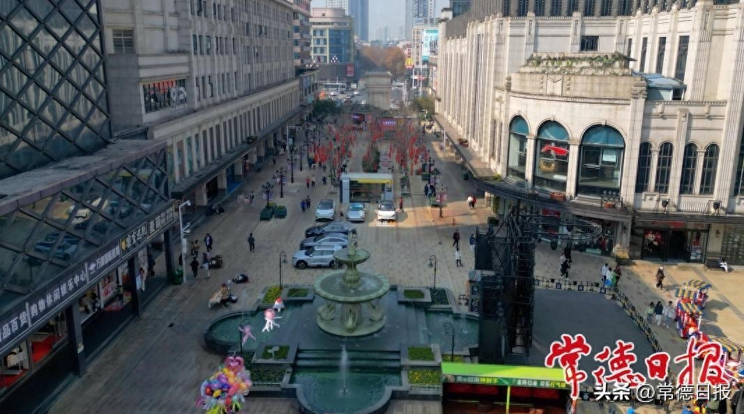 1月20日,航拍常德市城区步行街