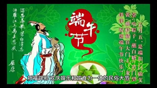 端午节又称端阳节、重午节、龙舟节、天中节等,日期在每年农历五月初五,是集拜神、祭祖、祈福、辟邪、欢庆、娱乐和饮食为一体的民俗大节。关于端午节的由来有多种说法,以下是一些常见的观点: