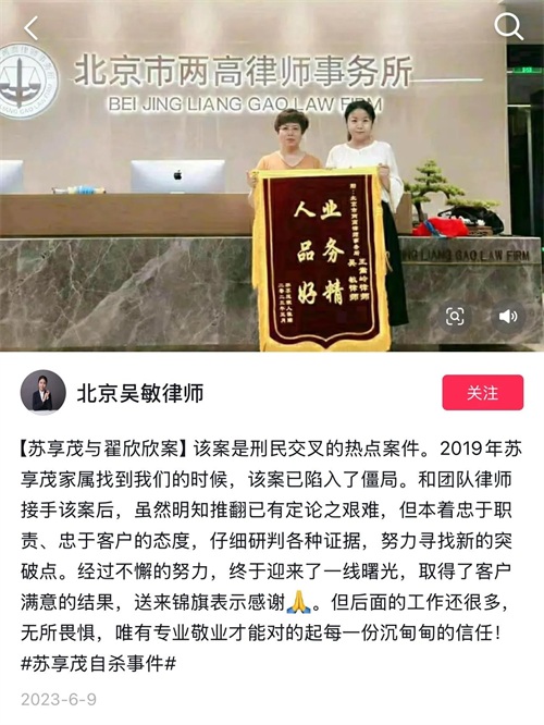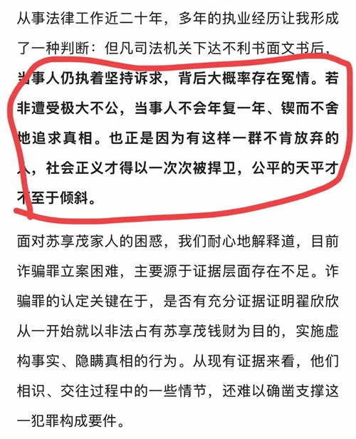因为,一定有人还以为是张起淮律师在推进,这对现任律师团队是不公平的,而现在的律师及团队也会因为苏享茂翟欣欣案在业内名声大噪!