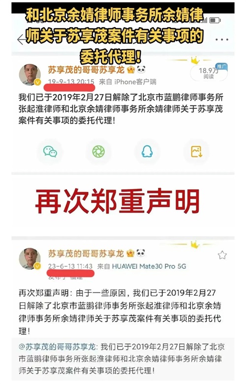 再看看苏家这份声明及再次郑重声明,我相信更多的是对现任律师及团队的肯定和尊重!