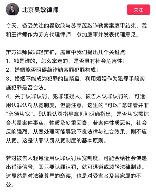 请注意吴敏律师用词: