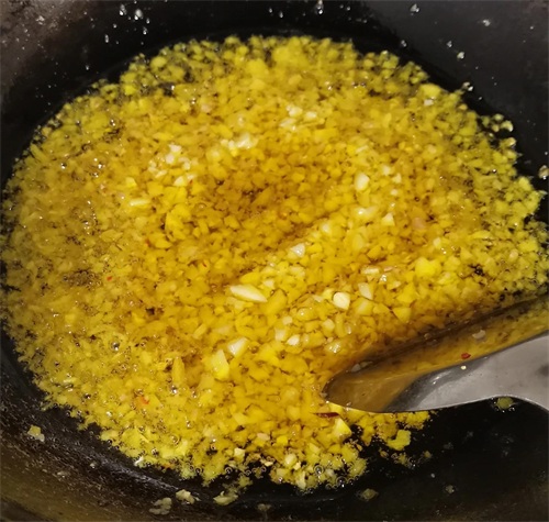 3.炸香料的油量至5成热时,下入蒜末,姜末小火炒香,倒入辣椒末小火不停的翻炒 ,再加入适量的盐,生抽,蚝油,白糖,和少许的白酒,继续翻炒,炒干里面的水分,再倒入花生碎,翻炒均匀,起锅凉冷,装入密封的玻璃器皿中即可。