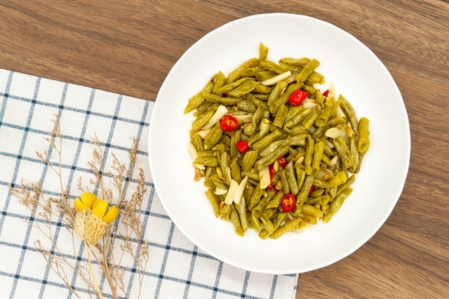 9、黔东南苗族酸豆角:这是贵州黔东南地区的传统腌制食品,以其酸爽可口而受到喜爱。酸豆角选用新鲜的豆角,经过腌制和发酵后,口感酸爽,适合作为下饭菜或者配菜食用。