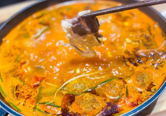 3、贵阳火锅:贵阳火锅是贵州当地的特色美食,以其麻辣鲜香而受到喜爱。火锅底料选用多种辣椒和香料炒制而成,配以新鲜的肉类、海鲜和蔬菜,煮熟后食用。火锅汤底麻辣浓郁,食材鲜美可口。