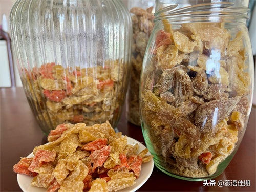 将晾制好的姜糖片放入容器保存,如果湿度大可多晾制一些时间。每天嚼2、3片,吃了两三天,推迟的例假来了。