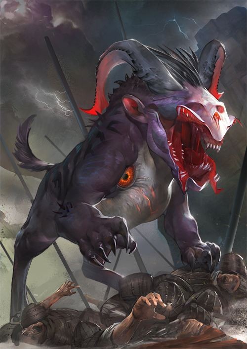 《神异经》将梼杌描绘成体格像老虎的毛犬类怪物,生长在西方的偏远地区。它的脸长得很像人脸,但是脚确是与老虎的脚很像,特别是嘴巴,他有野猪一样的獠牙,还有一条很长的尾巴。真是一只大怪物!!