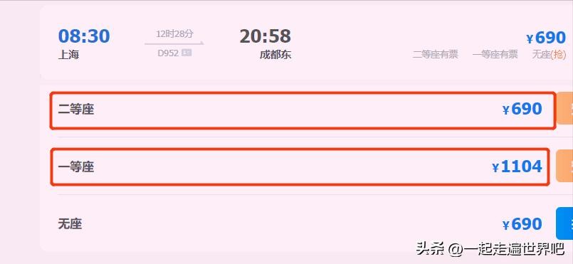 不过,D952次旅客列车的票价,可不便宜,二等座需要690元,一等座是1104元!