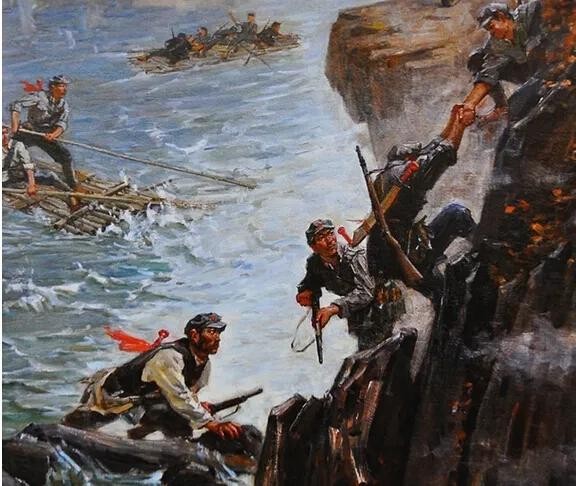 孙继先亲自挑选17名勇士,加上挑选者孙继先自己共18人,二连连长熊尚林是第一批,9名勇士,船在我红军激烈火力的掩护下到对岸登陆,第二船孙继先也带勇士们奋勇划到对岸,还好,很幸运!