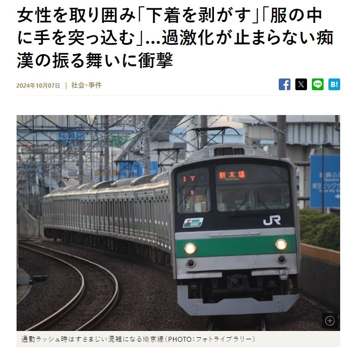 近年来,痴汉问题在日本社会中日益严重,尤其是在以拥挤著称的JR埼京线,数十年来时常发生这种难以预测的犯罪行为。