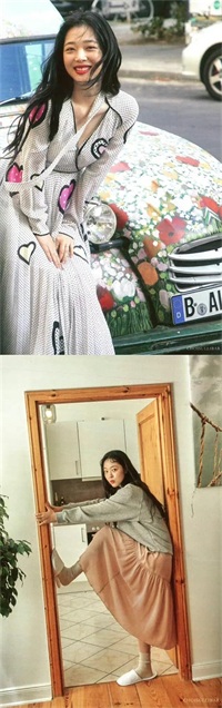 扶着门框这张完全是调皮的小女孩模样,棉质衣服也让她的气质更加柔软温和,很可爱的一张照片~
