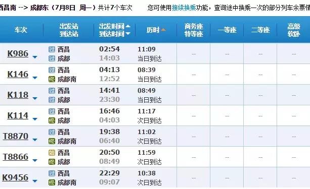 7月9日前成都往返西昌、攀枝花为夕发朝至