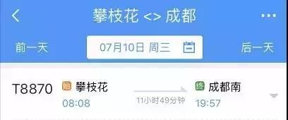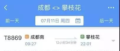 7月11日,T8869(成都-攀枝花)从成都南始发时间为9时27分,到达西昌为18时51分,终到攀枝花为22时01分。其余部分列车运行时刻也有调整。