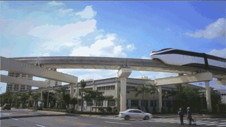 也许有人会问,云轨与磁悬浮有啥区别呢?云轨不同于磁悬浮,磁悬浮用在快速的交通,要求从一个地点到另一地点线路特别长,速度要求特别快。云轨灵活自如,可从城市建筑群中穿过,桥梁通透,独立路权,景观性好,能很好适应城市生态环境;编组灵活,单向运能为1-3万人/小时;最高时速可达80公里/小时。云轨一节车厢满载能坐200人,可设计成8节车厢,云轨适用于一线城市的接驳线和二三线的主力干线,比如从机场接驳到市区,从火车站接驳到商业区都可胜任。