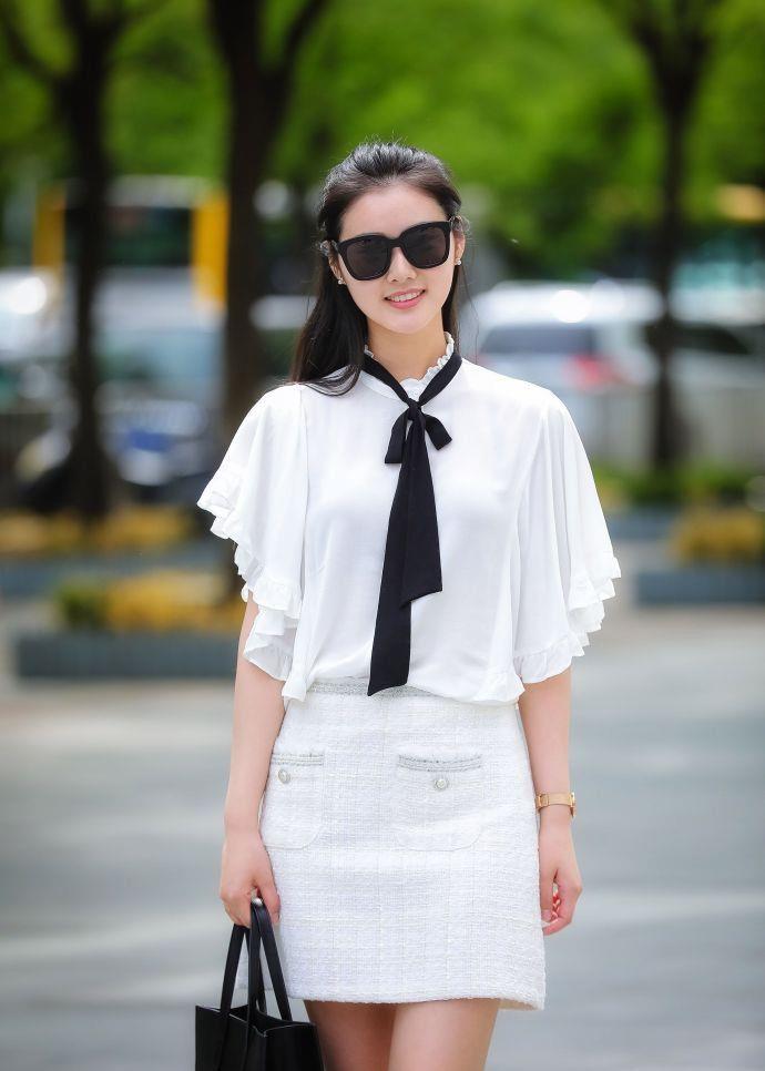 妹子这身打扮好清纯呀,就是手上的表有点不和谐