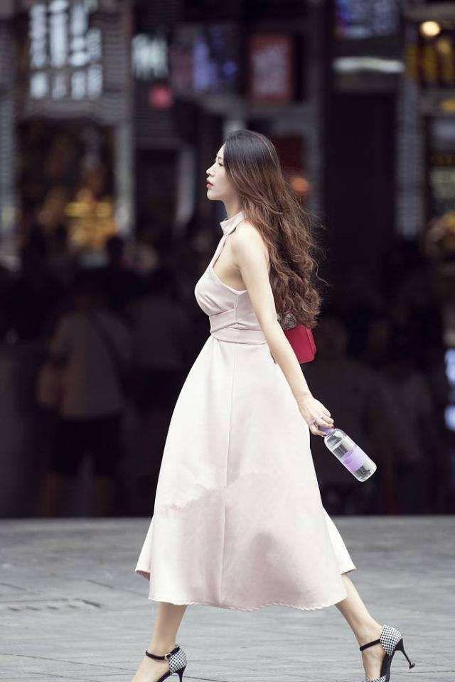 街拍:身穿淡粉色的公主裙,好像披了一件婚纱,好看极了