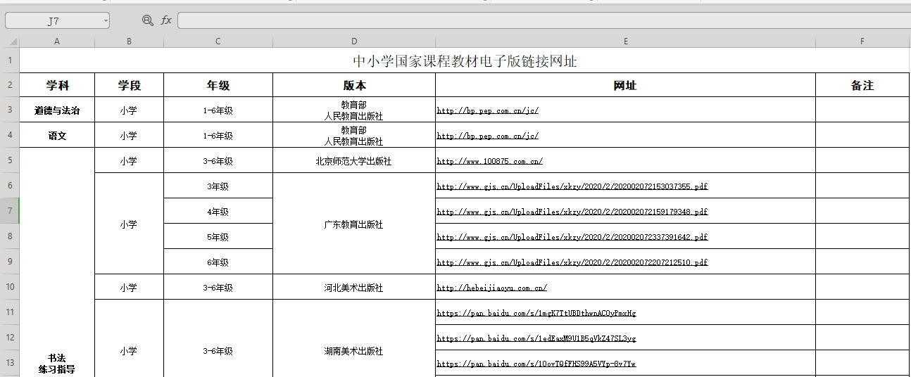 前不久,教育部提供了各中小学免费电子版教材下载链接,点击下载链接后会出现一个Excel表格,所有的下载链接都出现在表里了,选择自己想要的就看见下载了。如果需要的是中小学生教材,这个渠道绝对不能错过。