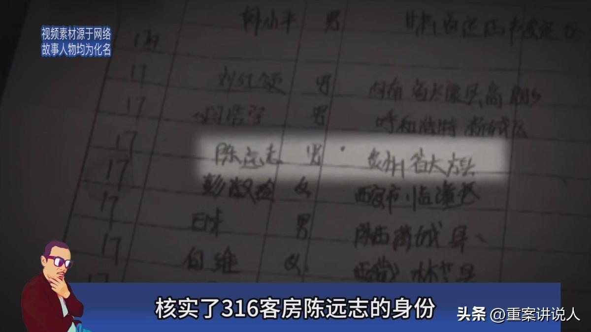 被控制的男子名叫陈远志,他声称自己就是报警人,而屋内的死者就是被他杀害的,警方查询了宾馆的住宿记录之后核实了316客房陈远志的身份,而楼道里的监控也记录下了重要的证据。