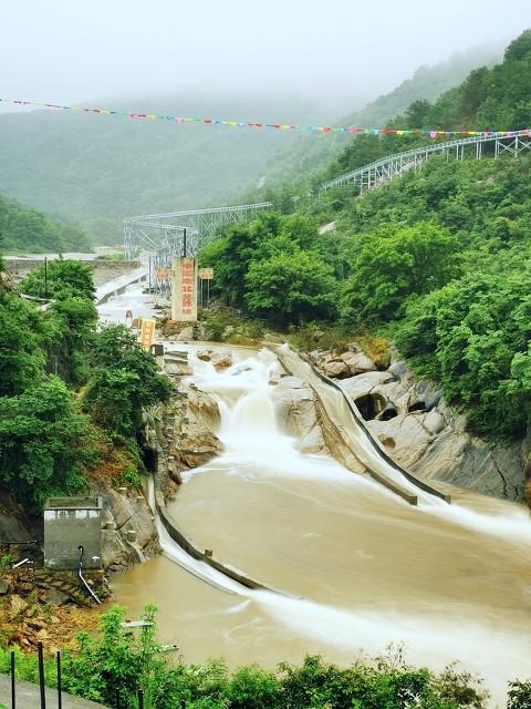 景区兴建水库两座,合计库容600万立方米,承雨面积96平方公里,设计漂流水量为5至6个流量,河道全长9公里,落差118米,最大处落差7米。漂流时间大约为2.5-3个小时,两岸悬崖陡壁,奇峰怪石林立,全程水量大,时而奔腾直下,时而回旋幽谷,使人心旷神怡。