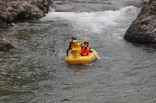 漂流新秀,全长6公里,落差高达187米,其中最大落差17米,最长滑道近百米,全程大小落差42处,险滩35处,漂流以其原始幽深的森林风光,惊险紧张与轻松荡舟交替的漂程体验,彰显出与众不同的特点。