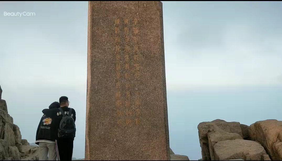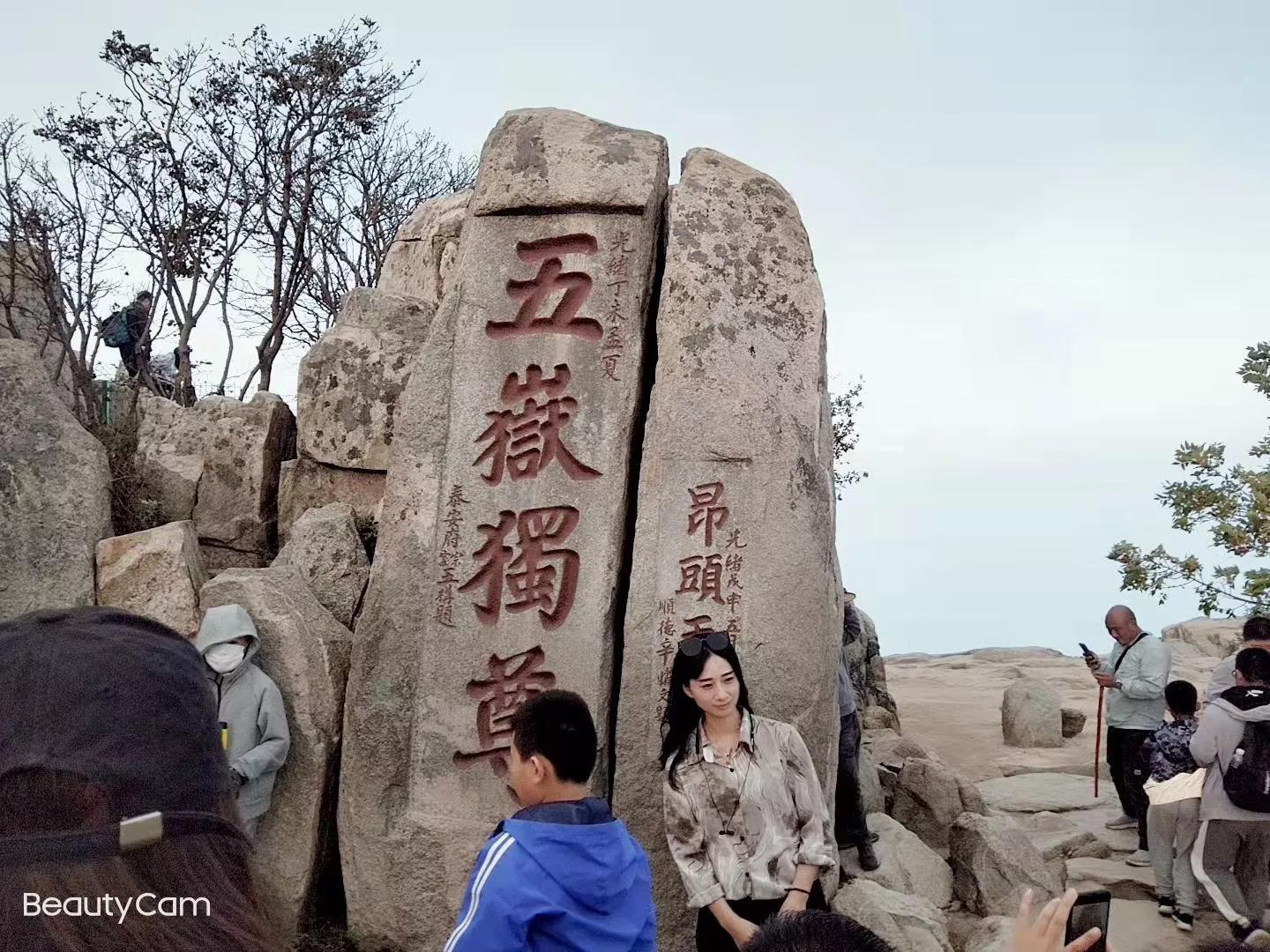 五岳独尊,熟悉吧,人民币上就有它呢。它位于泰山极顶玉皇庙东南,去往玉皇顶的必经之路上,玉皇顶海拔1545米,这四个字,是正楷字体,系清光绪丁未年间,也就是1907年,由泰安府宗室玉构题书。