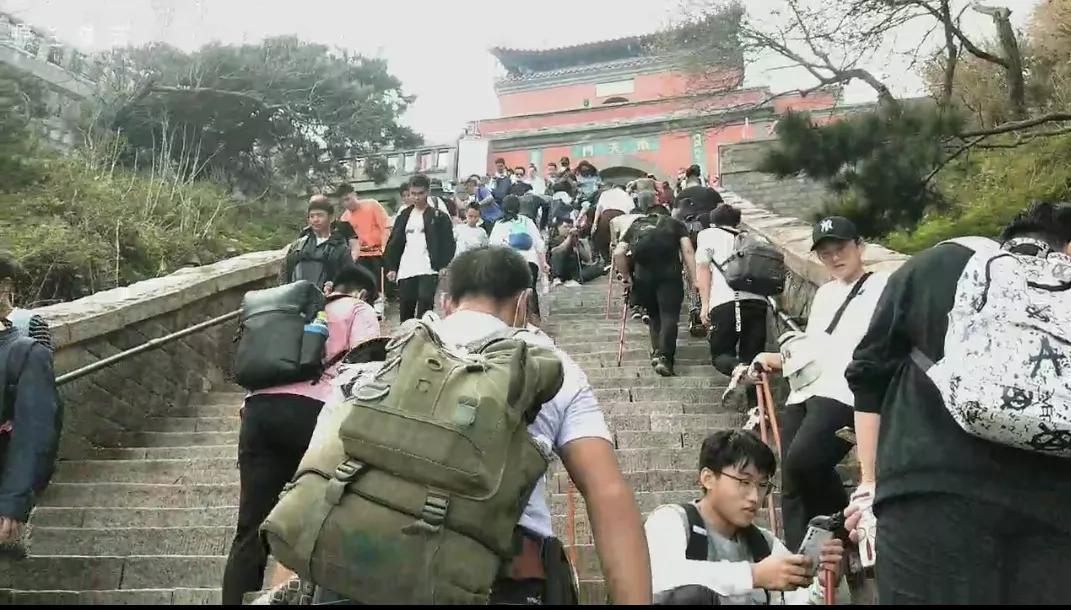 首先看看从红门,中天门,南天门到玉皇顶的人群吧,岱庙,红门,中天门,南天门,玉皇顶一线贯通呢!