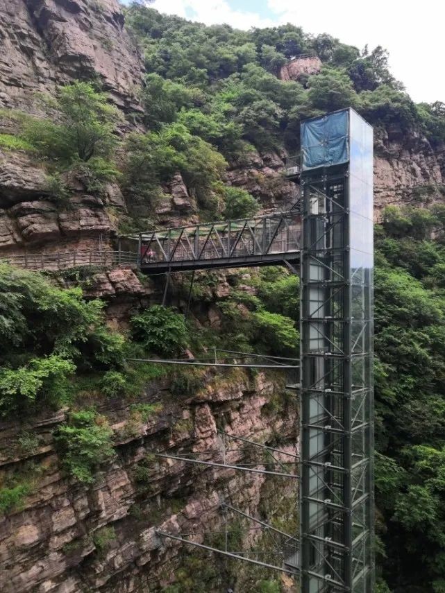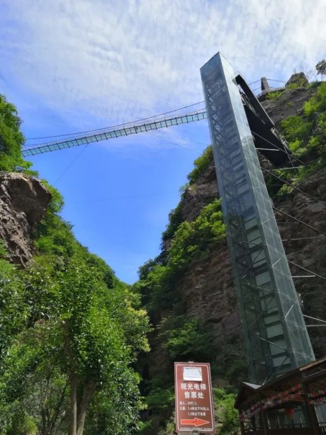 看对面的玻璃电梯,依崖修筑,直接到第一层栈道中段。