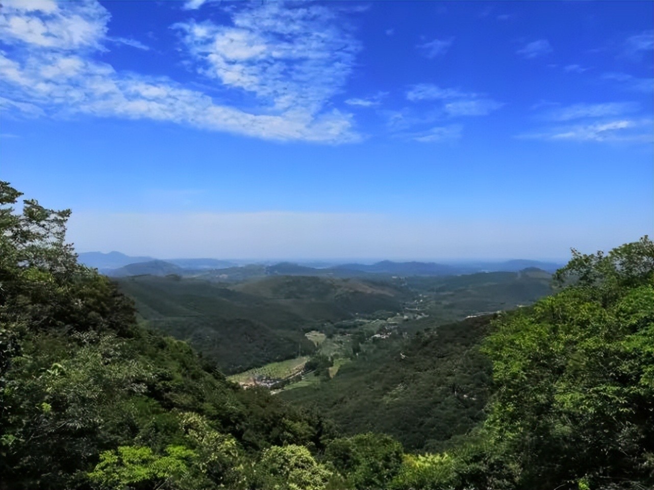 透过树林看天空湛蓝,白云悠悠,看景区地图,上面应该还有燃灯佛庙,貌似没有路,应该还没开发上不去,也不知道有没有野路。