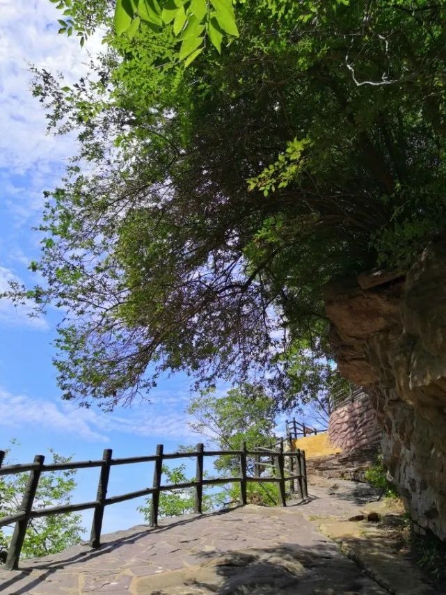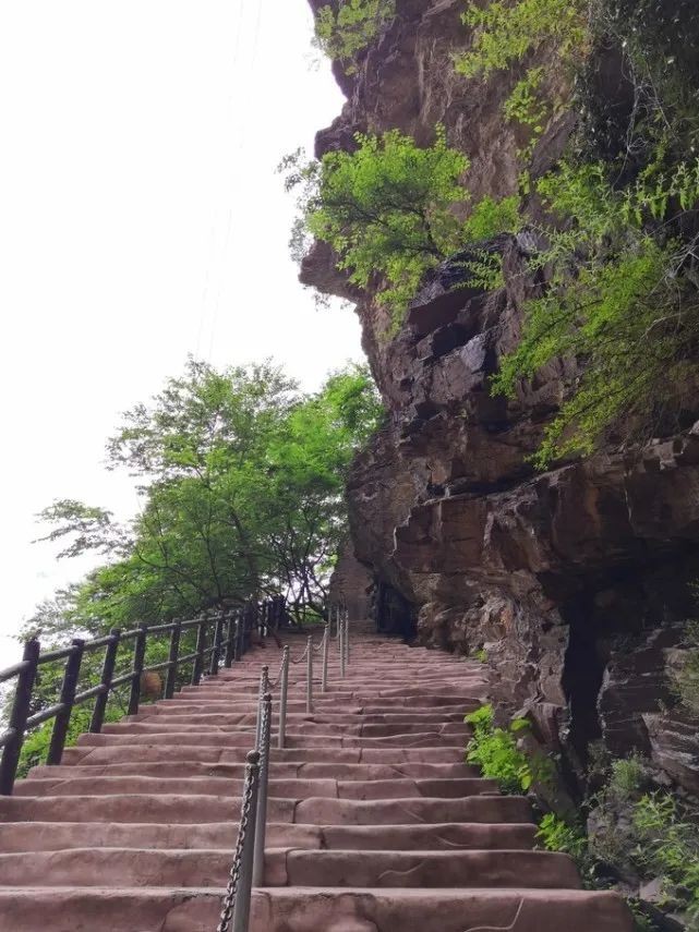 回望台转个弯就是第一层栈道结束、第二层栈道开始的岔口,这里也可以走台阶直接上山顶,其实上面还有较短的曲折栈道和几个观景台。