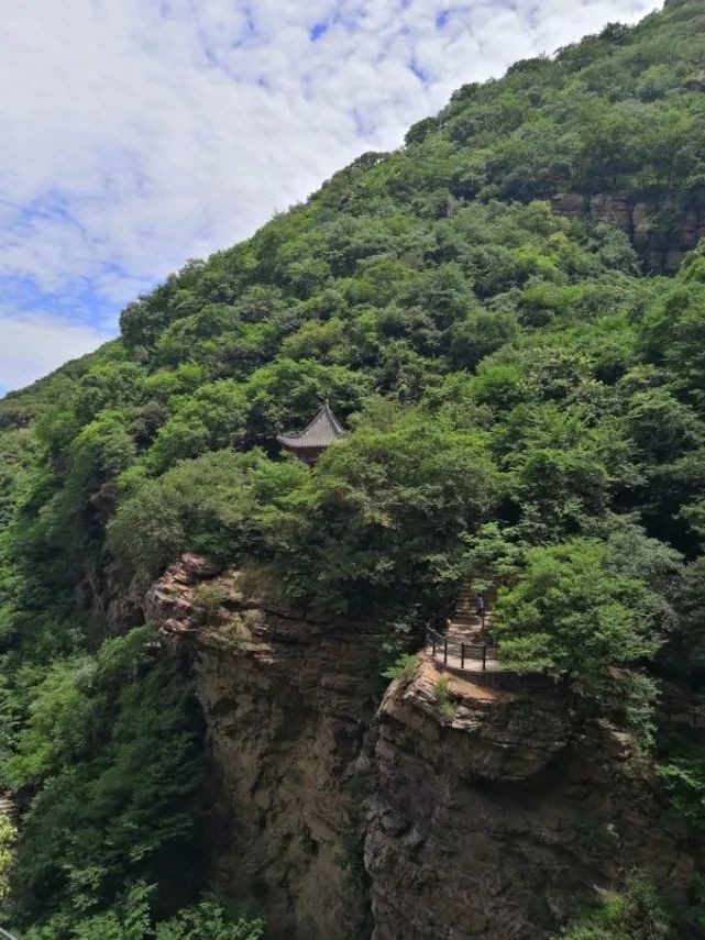 回看对面的苍翠掩映中的天官亭,其实这一段就是W字形峡谷。舞钢 原本是一片汪洋大海,由于受地壳运动的影响,地层大幅度上升与下降,海水的不断侵入,使之海陆轮番占据,最后形成陆地山川,