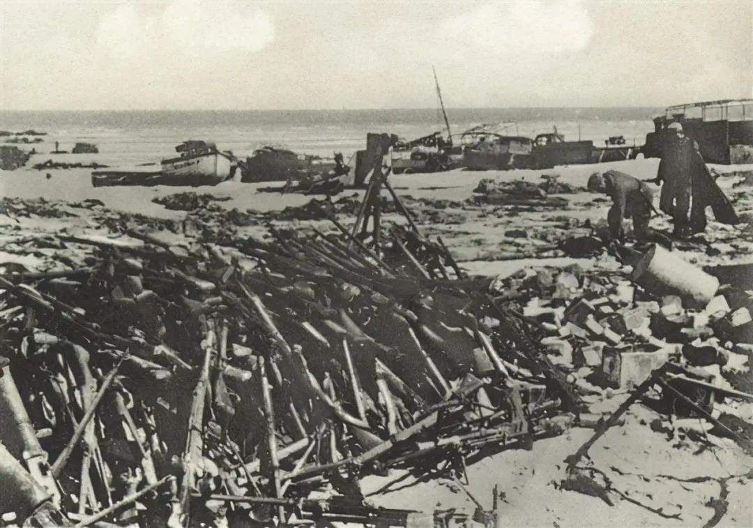 很多情况下,这些宛若惊弓之鸟的士兵不愿意呆在船舱内,而是执意站在甲板上,以便在船只沉没时跳船。而为了尽可能运走更多的人,远征军几乎抛弃了所有的装备,有的人甚至连背包都扔了,空手上了船。英国人总共留下了455辆坦克,8万多辆汽车、摩托车和其他设备,2.5万支枪支和火炮,6.8万吨弹药,14.7万吨燃料和37.7万吨其他物资。