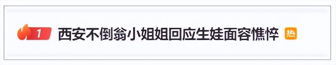 今晨,不倒翁小姐姐再度冲上微博热搜,霸榜第一名,此次的话题词是#西安不倒翁小姐姐回应生娃面容憔悴#。