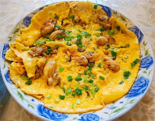 接下来说说蚝仔煎蛋,其实就是生蚝煎鸡蛋,这个我会在网上买现成的蚝肉,做法比较简单,耗时也很短,是一道很不错的快手菜