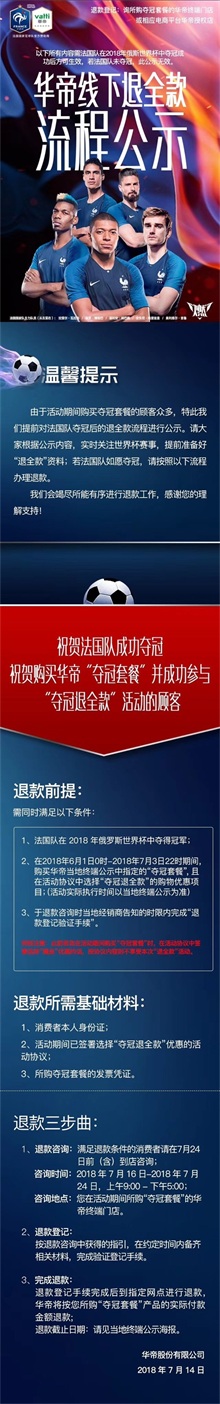法国夺冠!买了华帝“夺冠套餐”的杭州人,可以来退全款了