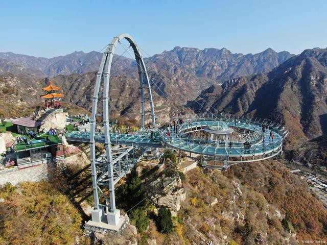 UFO玻璃观景台:石林峡最著名的景点之一,站在透明的玻璃观景台上,可以俯瞰整个石林峡的壮丽景色,体验刺激与壮观并存的感觉。