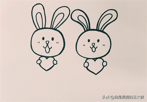 第四步:两只小兔子拿着小爱心。