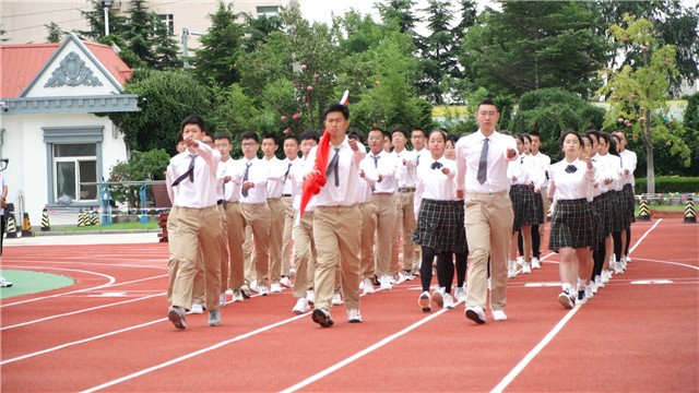“凝心聚力,爱我中华,勇于担当,成就辉煌。”伴随着激昂的口号声,威海环翠国际中学开始了新学期开学第一课。