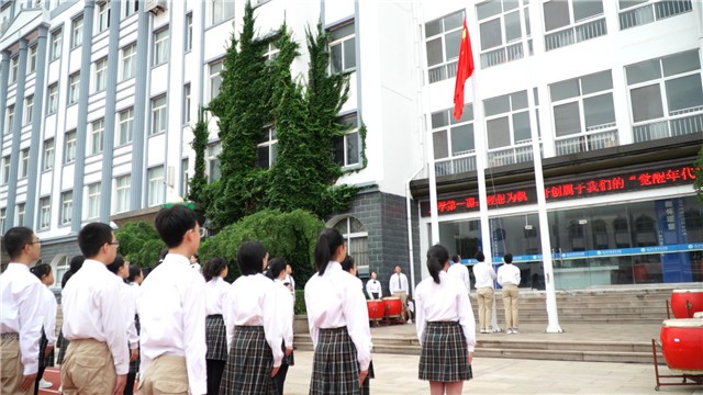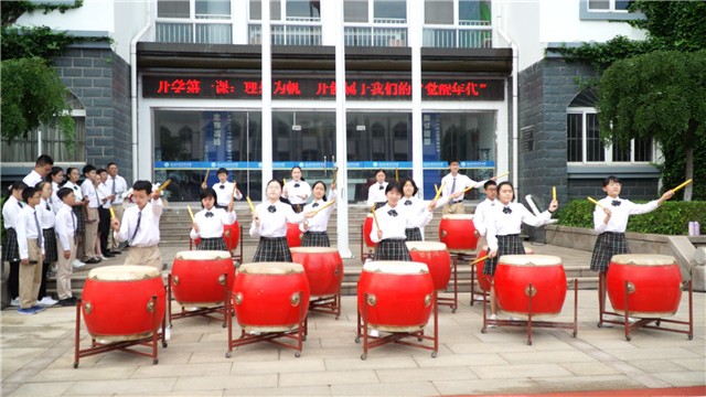开学典礼上,威海环翠国际中学将升旗课程、团队课程、社团课程等德育特色育人课程进行有机融合,彰显学校润泽润美的办学理念。以演说、歌舞、大鼓演奏等各种形式,为师生搭建展示、感知、提升的情境和平台,增强全校师生对国中基因的深度体认和情感凝聚,引领广大师生在工作和学习中不断超越自我,激发广大师生在庆祝中国共产党成立100周年的时代背景下,坚定理想信念,爱党、爱国、爱人民,在建设中国特色社会主义的伟大事业中接续奋斗、不负芳华。