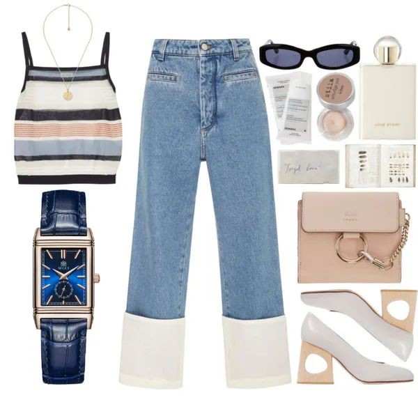 减龄条纹T+宽松牛仔裤 再配上蓝色腕表。即阳光自信又随意~