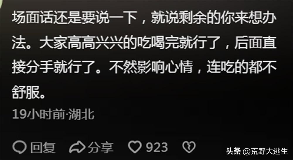 等会儿吃完喝完,咱就开开心心地各奔东西,别整那些有的没的,影响咱的心情和胃口,多不值当啊!