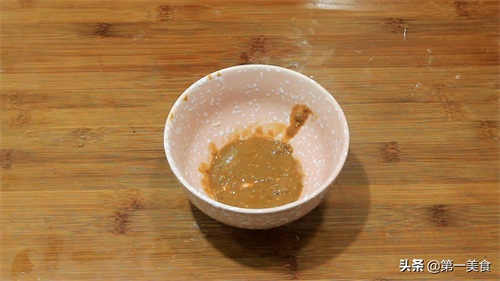 2.趁着发面的时间,我们准备油酥,碗中放入芝麻酱10克,加入食盐2克,芝麻香油5克,椒盐3克,搅拌均匀备用。