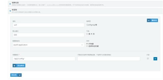 映射名即是ConfigMap名称,容器路径需要提前存在的路径,如果没有的话服务创建过程生成容器会失败。