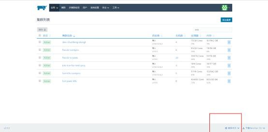Rancher登录页面通过账号密码登录使用,登录成功后界面如下: