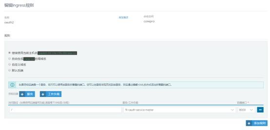 需要填写的有Ingress名称、访问域名、访问路径以及对应的服务和端口。