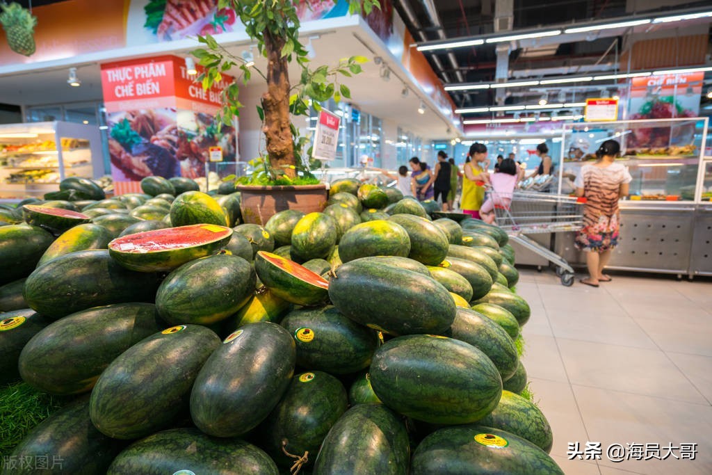 我转了一圈,唯一便宜的就可能是香蕉了,一公斤香蕉大约需要人民币12元,香蕉还是当地生产的,而货架上一个大西瓜大约有6斤,需要52元人民币。