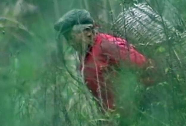 这个穿红衣服的人见到村民,拔腿就跑,显得十分神秘。